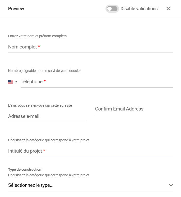 Remplissez le formulaire et téléchargez vos plans (plan de masse, plan de situation) au format PDF, DWG ou image.